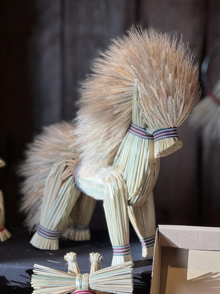 Halmslöjd, bockar, grisar, tomtar, taxar, kransar, rutor, kärvar mm.